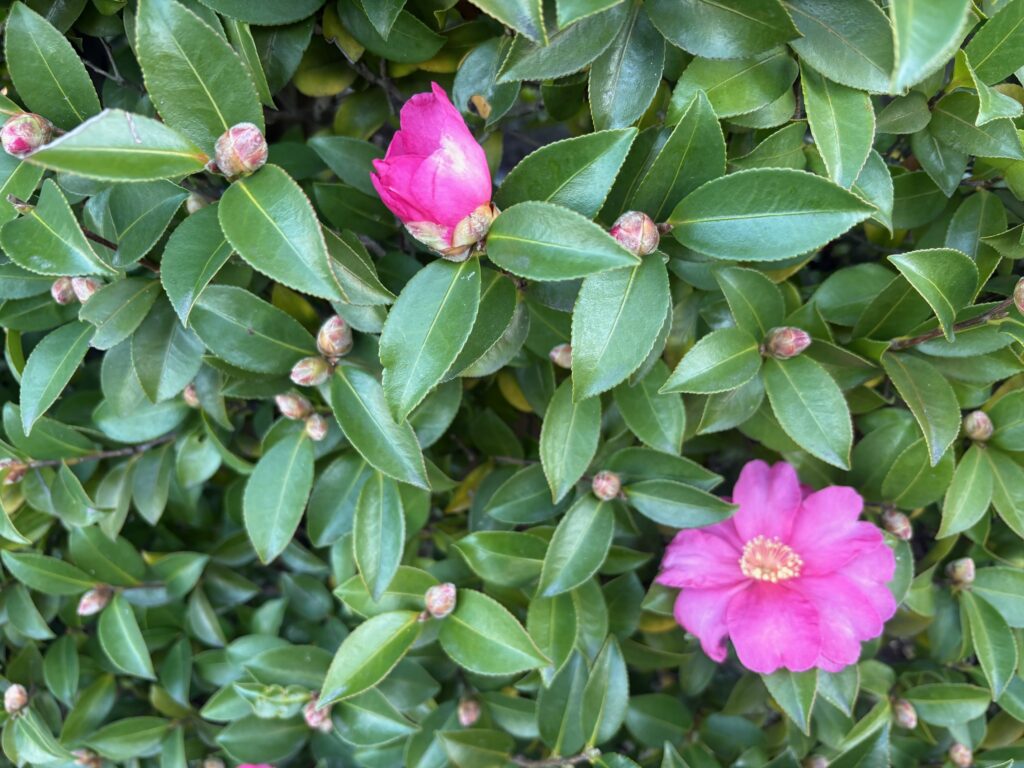 大口町の桂林寺にツバキが咲き始めました!