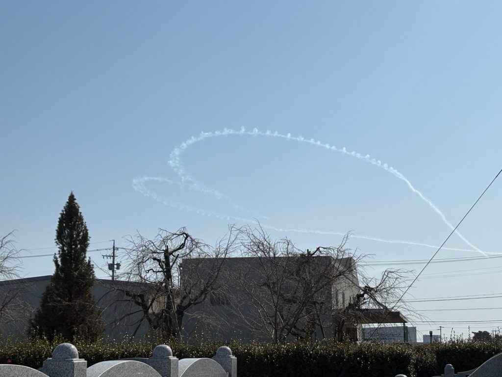 スタッフ日記 ブルーインパルス 2026.3.1 こんにちは 寺村です。 今日は小牧基地航空祭でしたね。 丹羽郡大口町の桂林寺からもブルーインパルスの飛行を 昨日の練習飛行と今日の本番飛行を見ることができました。 昨日の飛行練習 今日の本番飛行 昨日は風が強かったですが、 今日も天気がよくきれいに見えました(^^) 3月になりました。 春彼岸です! ご見学は随時受け付けております!! 下記フリーダイヤルよりお申込みください。 0120-622-340 スタッフ日記